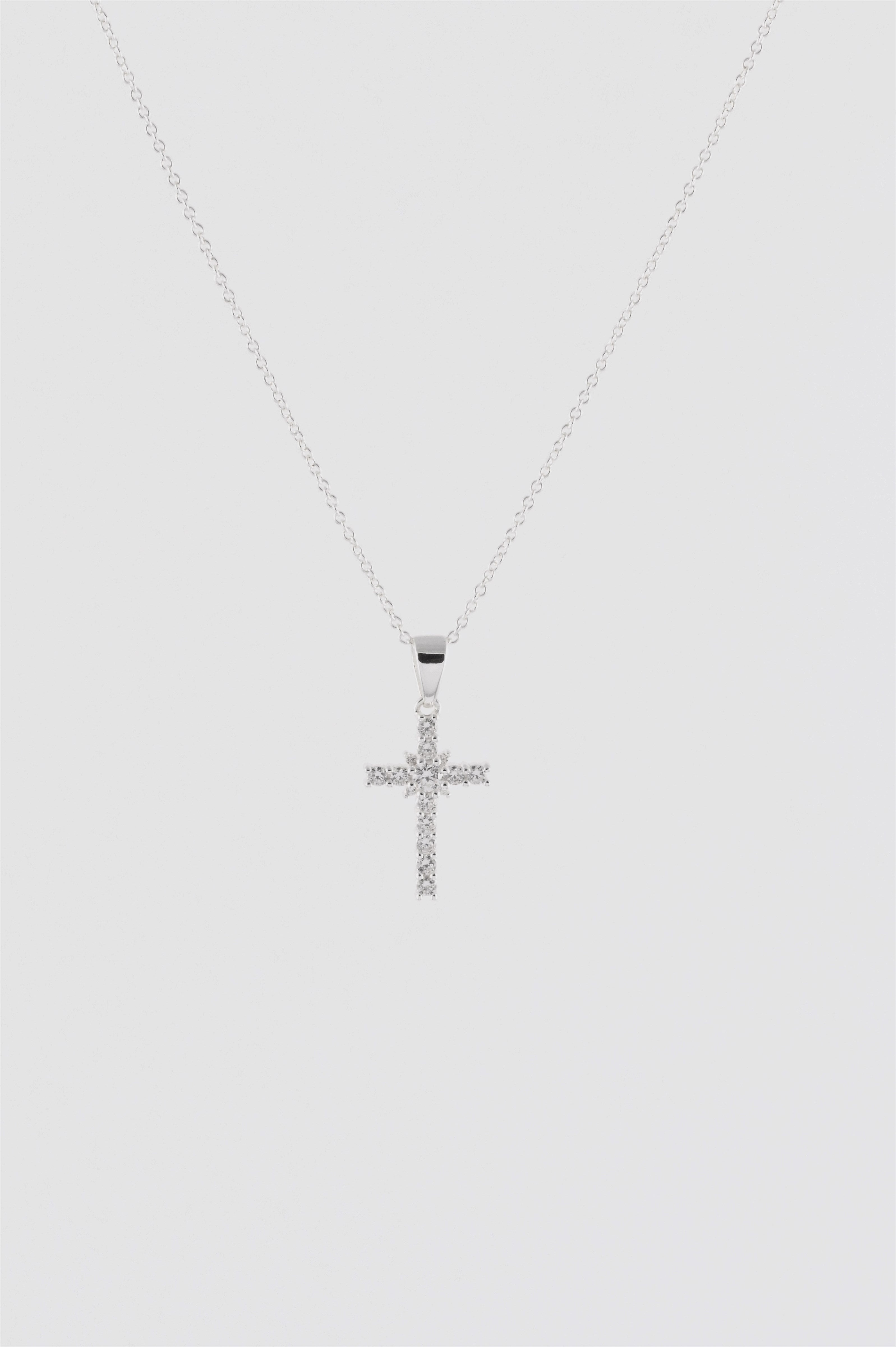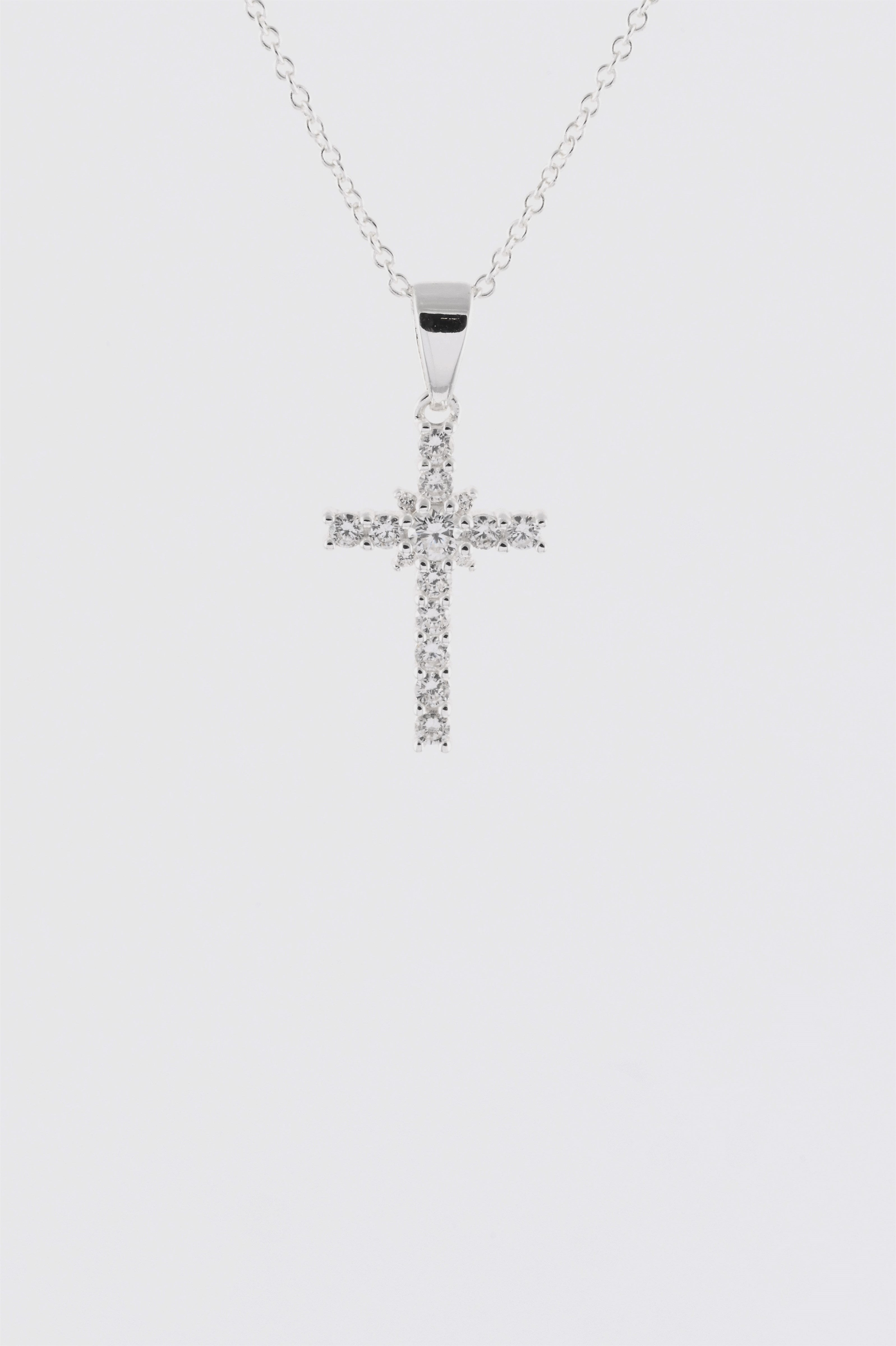 STERLING SILVER ROUND CZ CROSS PENDANT