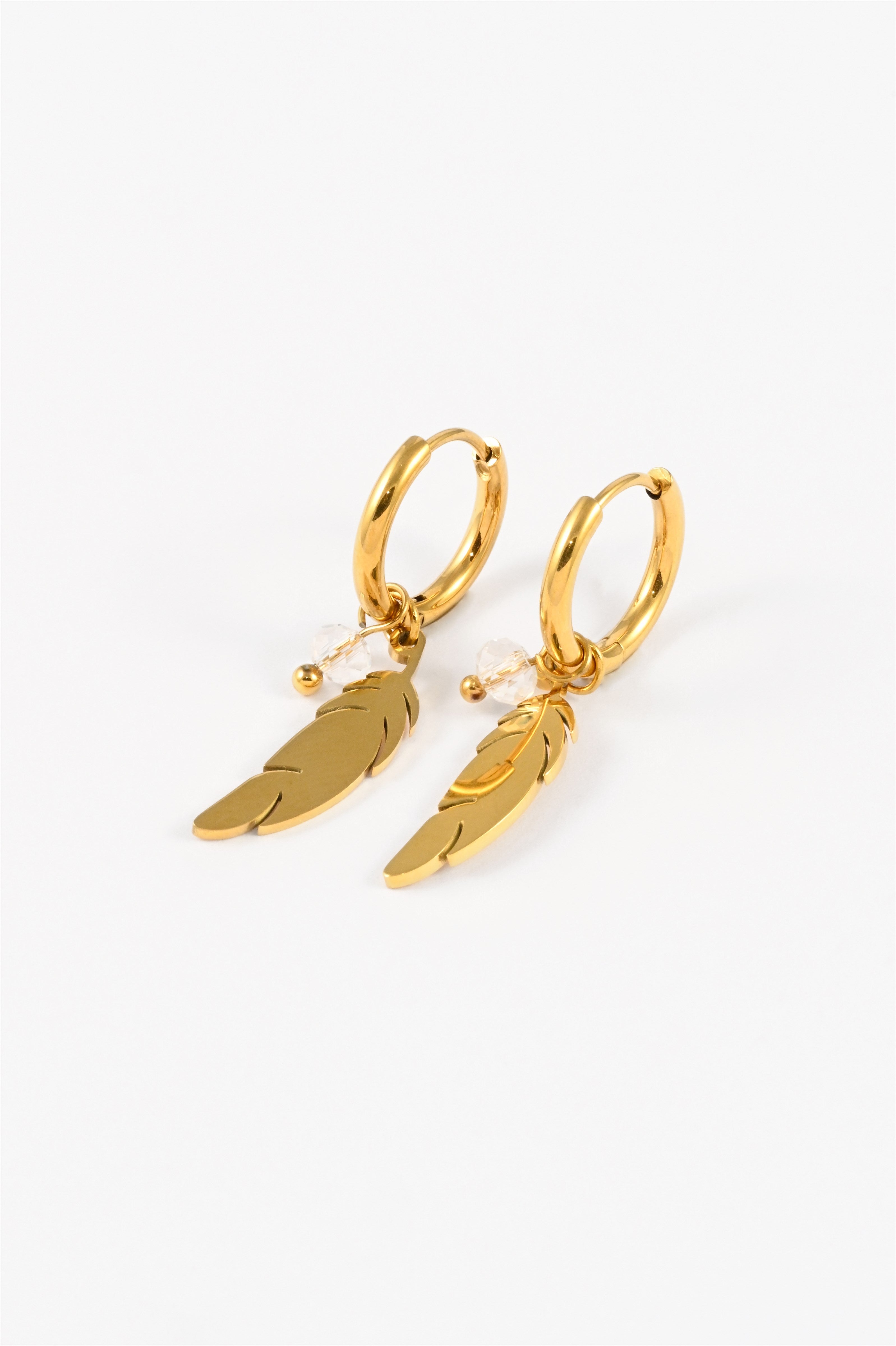 WATERPROOF GOLD BOHO FEATHER CHARM HUGGIE EARRINGS