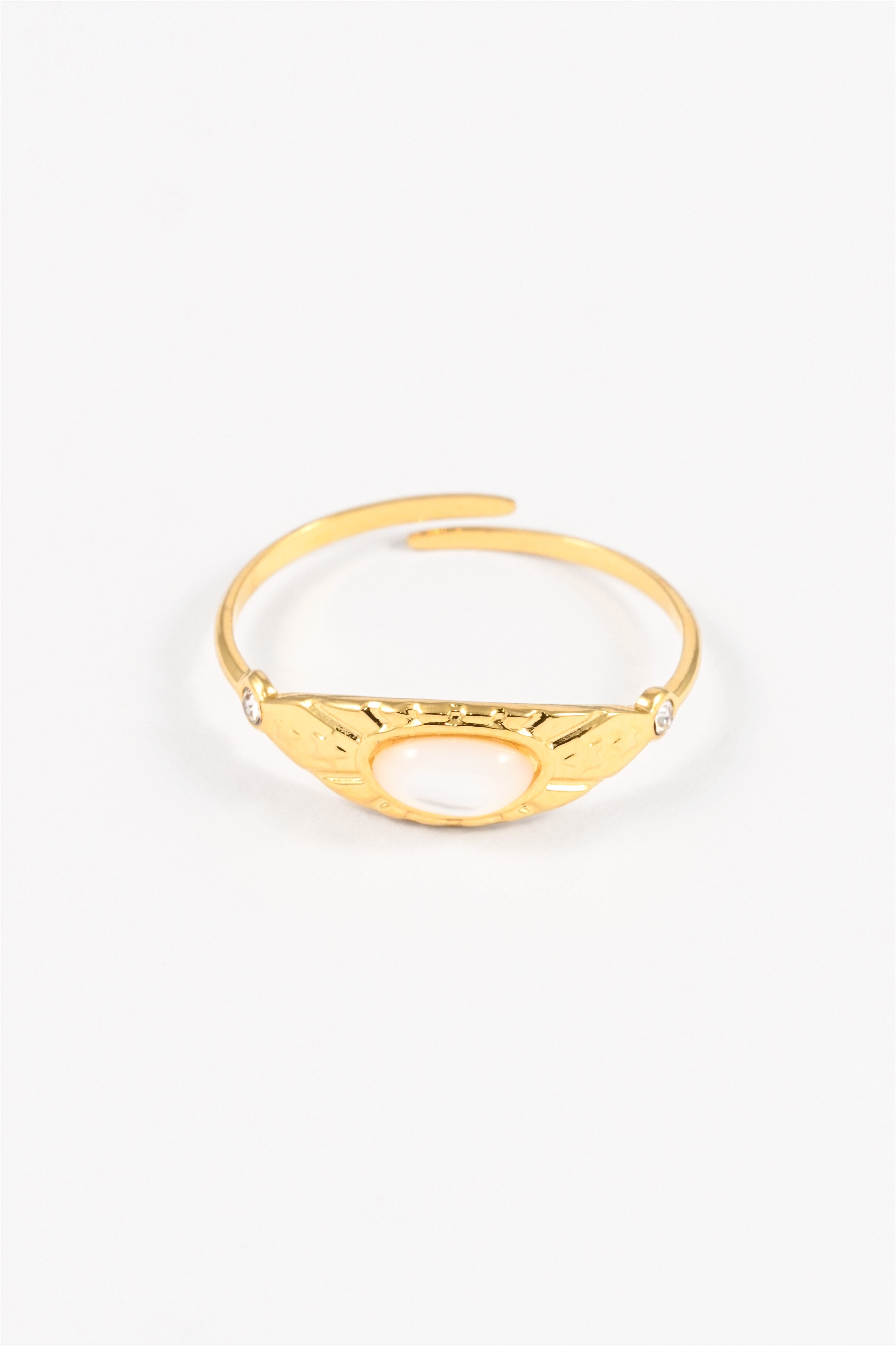 WATERPROOF GOLD ETCHED CZ ADJUSTABLE RING